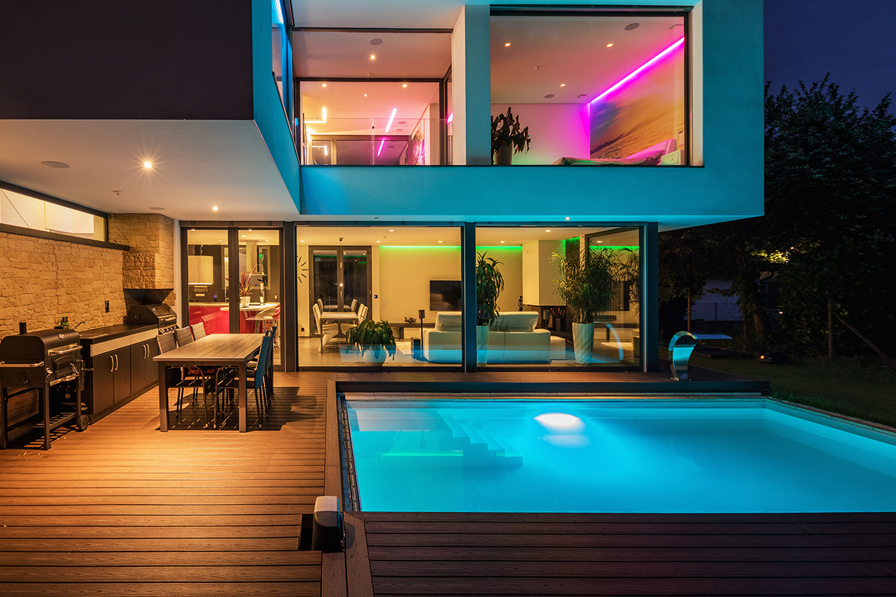 L’illuminazione della piscina offre la possibilità di utilizzare la piscina anche nelle ore serali, garantendo praticità e sicurezza. Inoltre, la componente luminosa è l’elemento perfetto per trasformare la tua vasca in un’oasi notturna di grande stile e dall’alto potere suggestivo.
